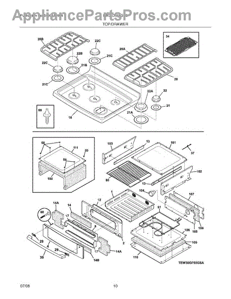 Parts for Electrolux EW3LDF65GSB: 09 - Top / Drawer Parts