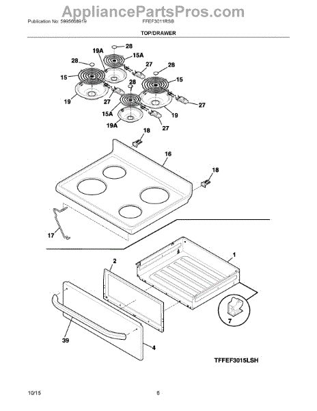 This is a Frigidaire main top for electric ranges. It sits beneath and holds the range's heating elements. If this part is damaged, it's usually obvious. It may dent or in some extreme cases, rust, and should be replaced if it's no longer able to hold heating elements.Before installing this part, make sure that power to the stove is cut, and do not begin repairs until the range is completely cool. A screwdriver, nut driver, and small dowel rod may be needed to install this part. Start by removing each heating element and drip pan. The old cooktop should be held in place with a number of screws or mounting brackets, the first of which may need to be accessed from inside the oven. Mounting hardware must be removed from the old cooktop and installed in the new one before putting the new cooktop in place.This is a genuine OEM part compatible with ranges from Frigidaire brands, including Electrolux, Frigidaire, Gibson, Kelvinator, Westinghouse, and others. This product includes no additional hardware.