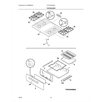 Parts for Electrolux FFGF3005MQF: 05 - Top / Drawer Parts