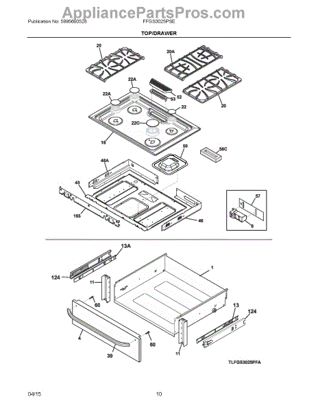 Parts for Electrolux FFGS3025PSE: 05 - Top / Drawer Parts