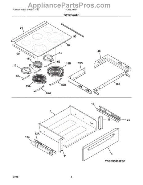 Parts for Electrolux FGES3065PWJ: 04 - Top / Drawer Parts