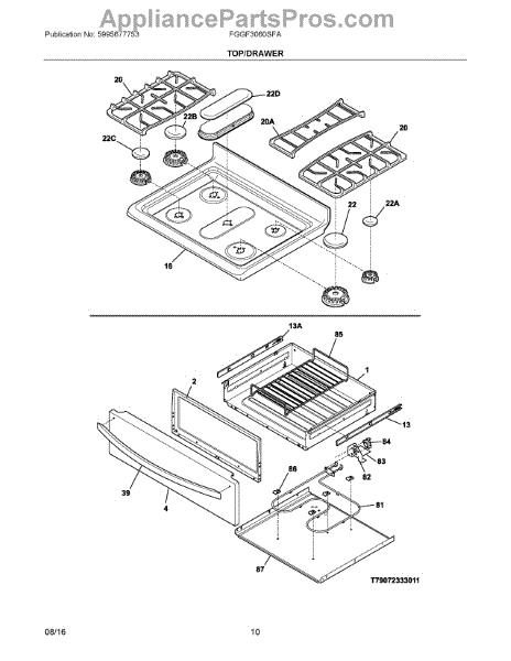 The Burner Grate is an OEM part for Frigidaire gas ranges. It supports racks and pans directly over the range's gas burners during cooking. The burner grate must withstand constant exposure to high heats without warping or degradation.