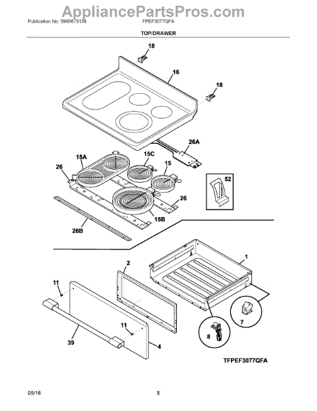 The Radiant Surface Element is an OEM part for Frigidaire ranges and cooktops. This part generates heat for cooking and boiling on the cooktop surface.