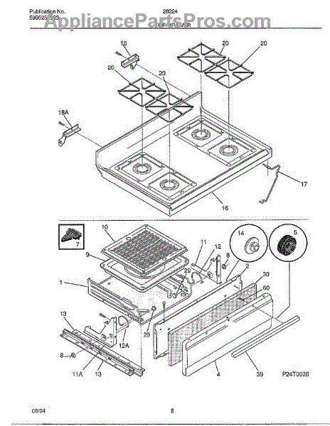 Parts for Frigidaire 282240A: Top / Drawer Parts
