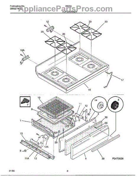 Parts for Frigidaire 282240B: Top / Drawer Parts