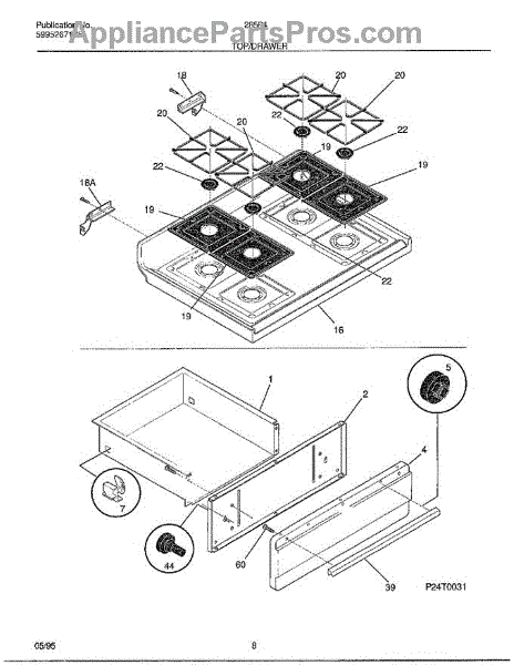 Parts for Frigidaire 285840B: Top / Drawer Parts