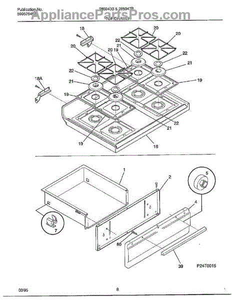 Parts for Frigidaire 285947B: Top / Drawer Parts