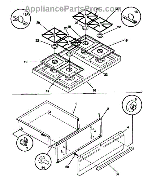 Parts for Frigidaire 30-3852-00-05: 05 - Top / Drawer Parts