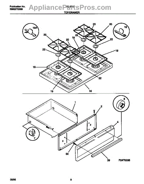 Parts for Frigidaire 30-3863-23-05: 05 - Top / Drawer Parts