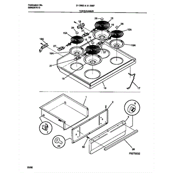 This main top is the flat cooktop surface that mounts over a range's burner box to provide a stable, finished cooking surface and protect internal components from spills and debris. It restores a level, secure area for burners and cookware. What it does: