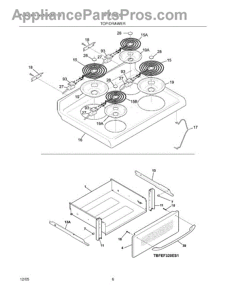 The 6-inch Drip Pan is an OEM part for Frigidaire ranges. This drip pan sits beneath the heating element on the stovetop, catching spills, drips, and food debris that occur during cooking.