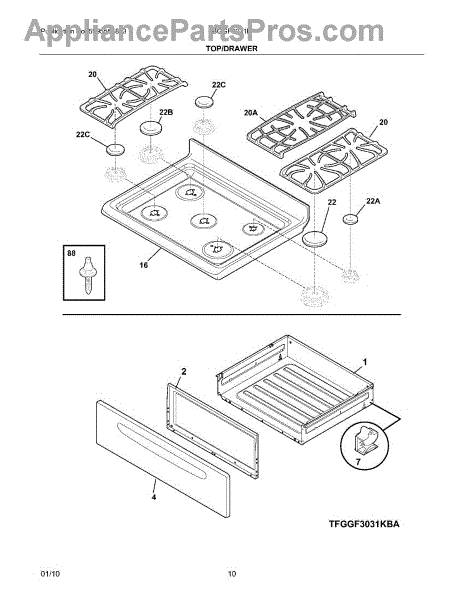 The oven grates are installed on top of the burner elements to hold various types of cookware and protect the burners from damage. Sometimes the grates on top of an oven's burners can become damaged or corroded, and repairing or cleaning won't be enough to fix them. Working grates should always be installed on top of the burners to protect pots and pans from direct heat. These grates also keep the burners from getting damaged. Make sure the old grates aren't hot before you remove them. Wear gloves if possible. Lift up on the old grates to remove them from the burners. Discard them and place the new ones in their old place. Make sure they are locked in place securely and don't sit unevenly.This Frigidaire grate kit is sourced directly from Frigidaire as a genuine OEM replacement part. The component is sold individually. This part is compatible with Frigidaire brand appliances.