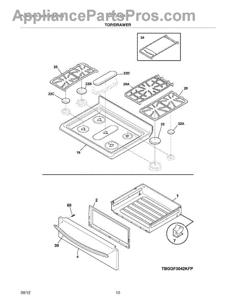 Parts for Frigidaire BGGF3042KFP: 09 - Top / Drawer Parts