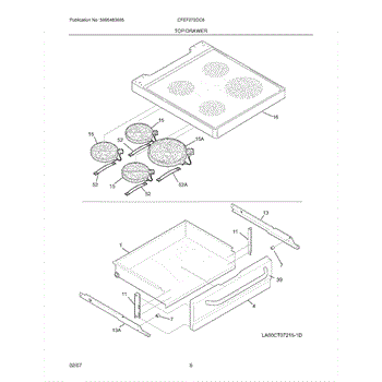 The Surface Element is an OEM replacement part for Frigidaire electric ranges, designed to provide efficient and even heating for cooking on the stovetop. This component is a radiant surface element commonly seen on glass and ceramic cooktops. 8 inch, 2200 watt