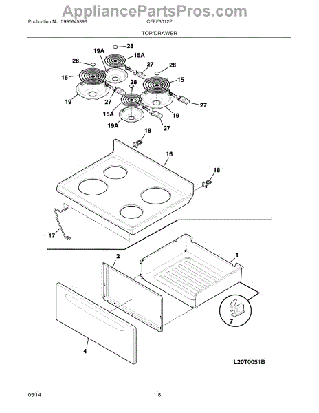 The 8-Inch Drip Pan is an OEM replacement part for Frigidaire ranges. It is positioned below cooktop burners to catch drips and spills on the cooking surface. Causes of a faulty drip pan include scorching or discoloration from prolonged high heat exposure. Mineral buildup over time can inhibit drainage. Symptoms consist of: