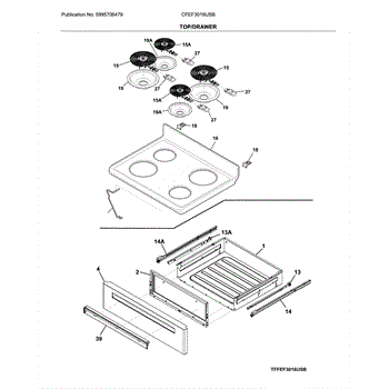 The Storage Drawer Front Panel is an OEM replacement part for Frigidaire ranges. It forms the stainless steel protective covering and interface for the warming storage drawer