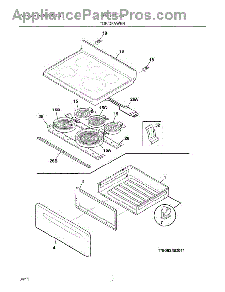 Parts for Frigidaire CFEF3022LWC: 07 - Top / Drawer Parts