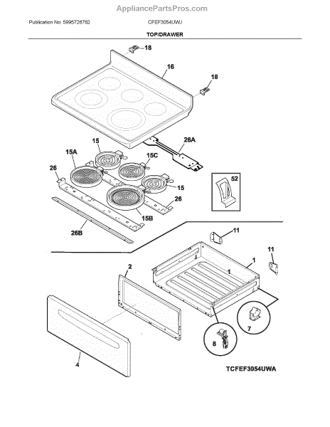 Parts for Frigidaire CFEF3054UWJ: Top / Drawer Parts