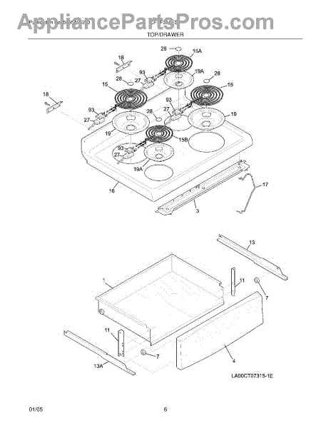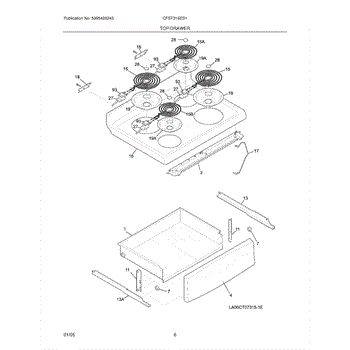 The 6-inch Drip Pan is an OEM part for Frigidaire ranges. This drip pan sits beneath the heating element on the stovetop, catching spills, drips, and food debris that occur during cooking.