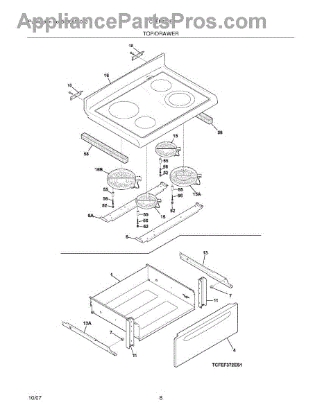 Parts for Frigidaire CFEF372EB5: 07 - Top / Drawer Parts