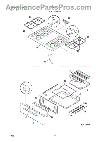Parts for Frigidaire CFGF316DSC: 09 - Top / Drawer Parts