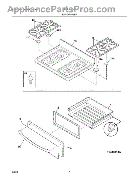 Parts for Frigidaire CFGF368GCF: 09 - Top / Drawer Parts