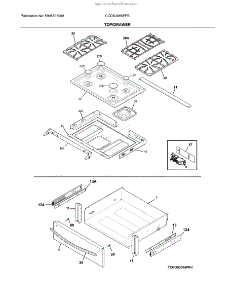 This main top assembly replaces the cooktop surface to restore a flat, secure mounting area for burners and controls. It helps improve appearance and prevents food and spills from entering the cabinet below. What it does: