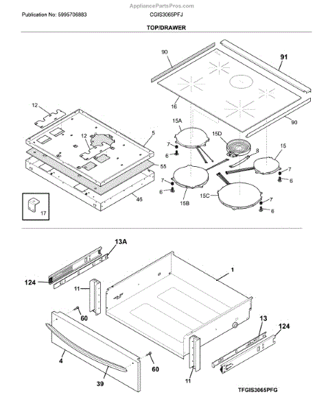 Parts for Frigidaire CGIS3065PFJ: Top / Drawer Parts