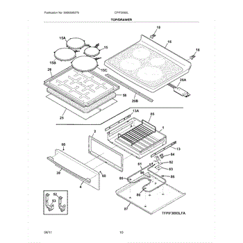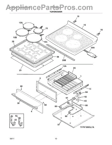 This main top assembly replaces the upper cooktop surface to restore a flat, finished work area and secure the burners and controls. It improves appearance and helps ensure proper fit of grates, burners, and control components. What it does: