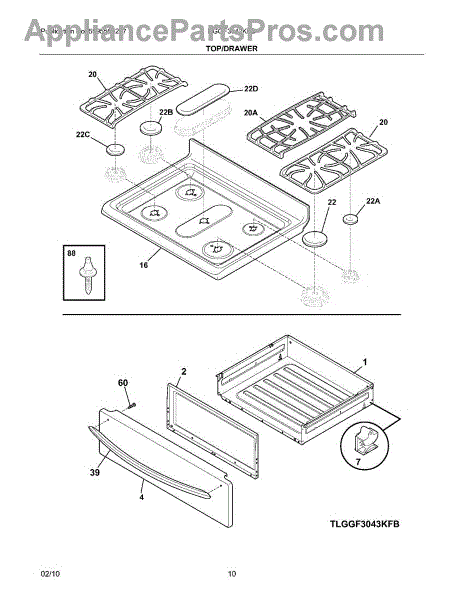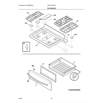 Parts for Frigidaire DGGF3042KFD: 09 - Top / Drawer Parts