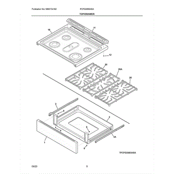 This cooktop burner grate supports cookware over the gas flame so pots and pans sit level and heat evenly. Replacing a worn or damaged grate restores a stable cooking surface and proper pan-to-flame spacing.