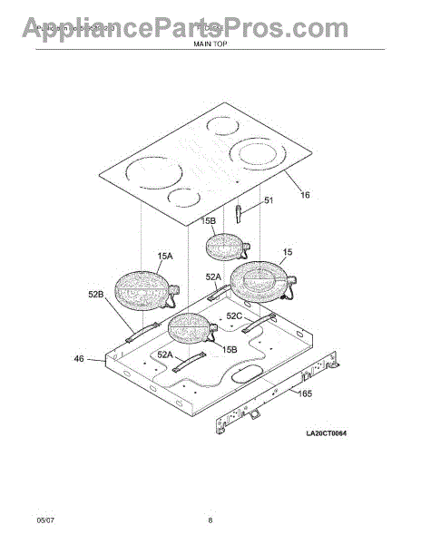 The Surface Element is an OEM replacement part for Frigidaire electric ranges, designed to provide efficient and even heating for cooking on the stovetop. This component is a radiant surface element commonly seen on glass and ceramic cooktops. 8 inch, 2200 watt