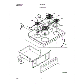 Parts for Frigidaire FEF305PHWC: 07 - Top / Drawer Parts