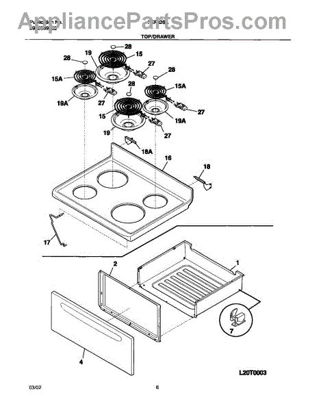 Parts for Frigidaire FEF326AQB: 07 - Top / Drawer Parts