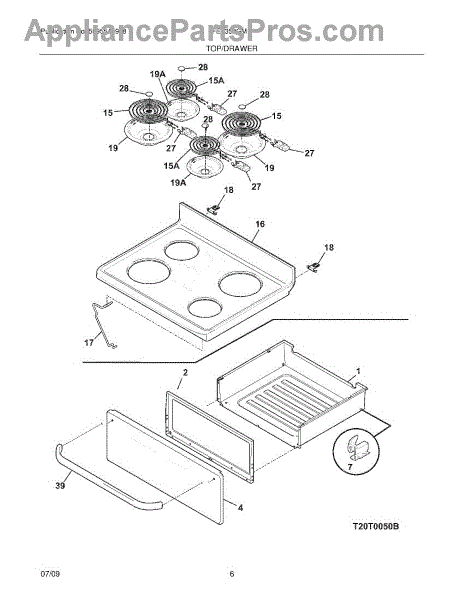 This is a Frigidaire main top for electric ranges. It sits beneath and holds the range's heating elements. If this part is damaged, it's usually obvious. It may dent or in some extreme cases, rust, and should be replaced if it's no longer able to hold heating elements.Before installing this part, make sure that power to the stove is cut, and do not begin repairs until the range is completely cool. A screwdriver, nut driver, and small dowel rod may be needed to install this part. Start by removing each heating element and drip pan. The old cooktop should be held in place with a number of screws or mounting brackets, the first of which may need to be accessed from inside the oven. Mounting hardware must be removed from the old cooktop and installed in the new one before putting the new cooktop in place.This is a genuine OEM part compatible with ranges from Frigidaire brands, including Electrolux, Frigidaire, Gibson, Kelvinator, Westinghouse, and others. This product includes no additional hardware.