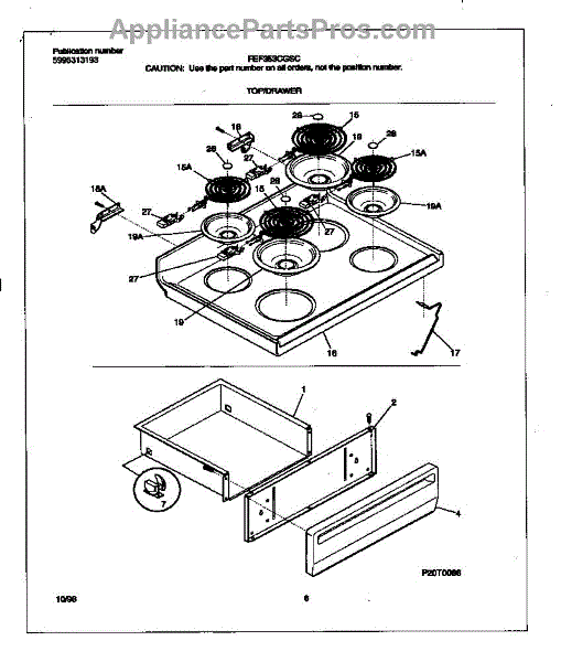 The 6" Chrome Drip Pan is an OEM part for Frigidaire ranges. It is responsible for catching and containing drips and spills from any cooking done on the range's cooktop. Made from durable chrome-plated steel, the drip pan is designed to seamlessly integrate with the appliance while protecting the heating elements.