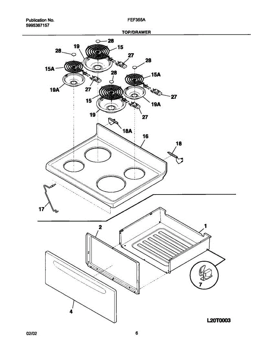 Parts for Frigidaire FEF355AQC: 07 - Top / Drawer Parts