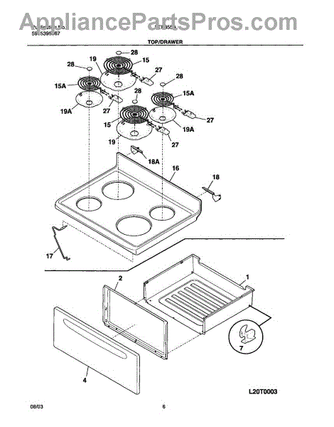 Parts for Frigidaire FEF355AQG: 07 - Top / Drawer Parts