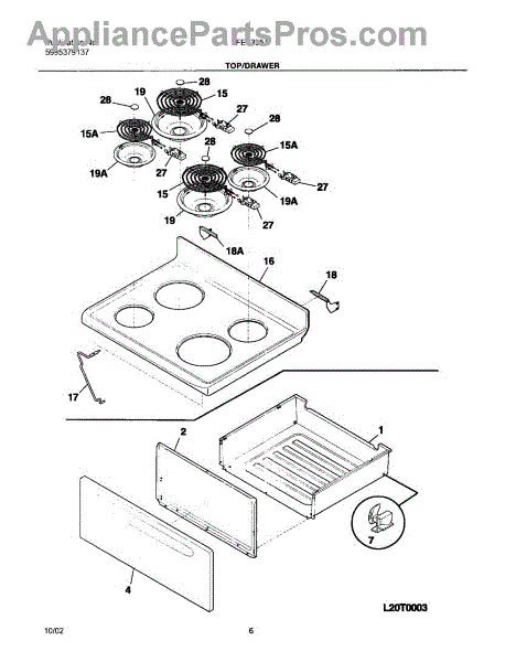 Parts for Frigidaire FEF355ASE: 07 - Top / Drawer Parts