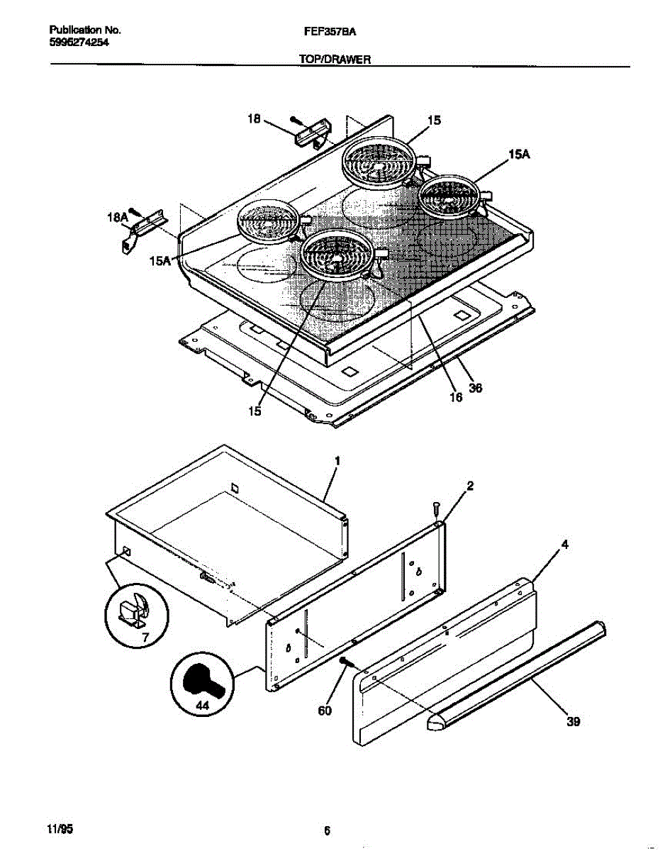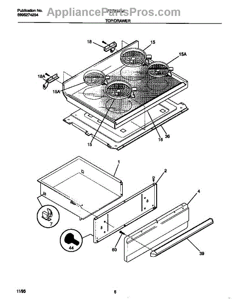 Parts for Frigidaire FEF357BADF: 04 - Top / Drawer Parts