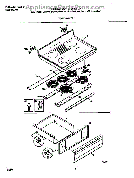 Parts for Frigidaire FEF358BFWD: 04 - Top / Drawer Parts