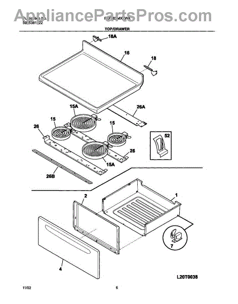 Parts for Frigidaire FEF362MXAWA: 07 - Top / Drawer Parts