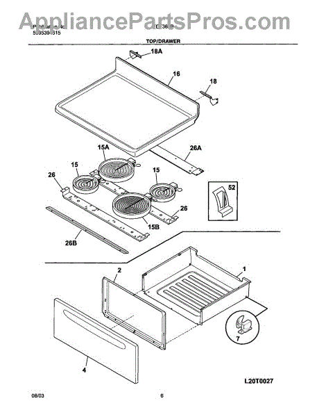 Parts for Frigidaire FEF365BWD: 07 - Top / Drawer Parts