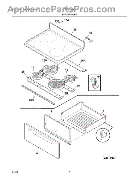 Parts for Frigidaire FEF365BWG: 07 - Top / Drawer Parts