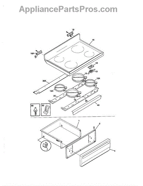 The Rear Drawer Glide is an OEM part for Frigidaire ovens and ranges. It is designed to provide smooth movement for the oven's rear drawer. The rear drawer glide allows the drawer to slide in and out with ease, providing convenient access to storage space or broiler pans. This is the glide that attaches to the rear of the oven drawer. For front glide that attaches to the body use 3051162. Two front and two rear are used for each stove. One for each corner.