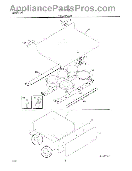 The Rear Drawer Glide is an OEM part for Frigidaire ovens and ranges. It is designed to provide smooth movement for the oven's rear drawer. The rear drawer glide allows the drawer to slide in and out with ease, providing convenient access to storage space or broiler pans. This is the glide that attaches to the rear of the oven drawer. For front glide that attaches to the body use 3051162. Two front and two rear are used for each stove. One for each corner.