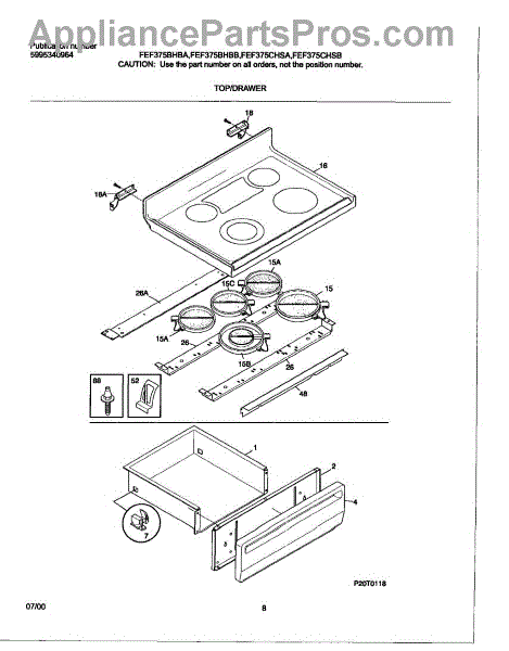 The Surface Element is an OEM replacement part for Frigidaire electric ranges, designed to provide efficient and even heating for cooking on the stovetop. This component is a radiant surface element commonly seen on glass and ceramic cooktops. 8 inch, 2200 watt