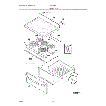 The Surface Element is an OEM replacement part for Frigidaire electric ranges, designed to provide efficient and even heating for cooking on the stovetop. This component is a radiant surface element commonly seen on glass and ceramic cooktops. 8 inch, 2200 watt