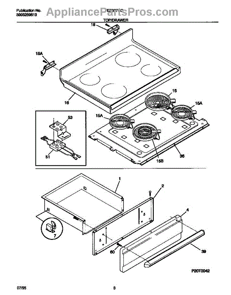 Parts for Frigidaire FEF387CCTB: 04 - Top / Drawer Parts