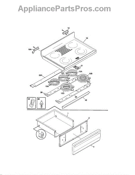 The Rear Drawer Glide is an OEM part for Frigidaire ovens and ranges. It is designed to provide smooth movement for the oven's rear drawer. The rear drawer glide allows the drawer to slide in and out with ease, providing convenient access to storage space or broiler pans. This is the glide that attaches to the rear of the oven drawer. For front glide that attaches to the body use 3051162. Two front and two rear are used for each stove. One for each corner.